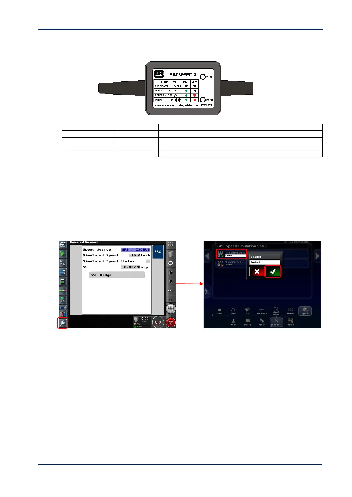 If for whatever reason the Satspeed 2 is not utilised, and Forward speed signal is instead obtained from the ISOBUS,