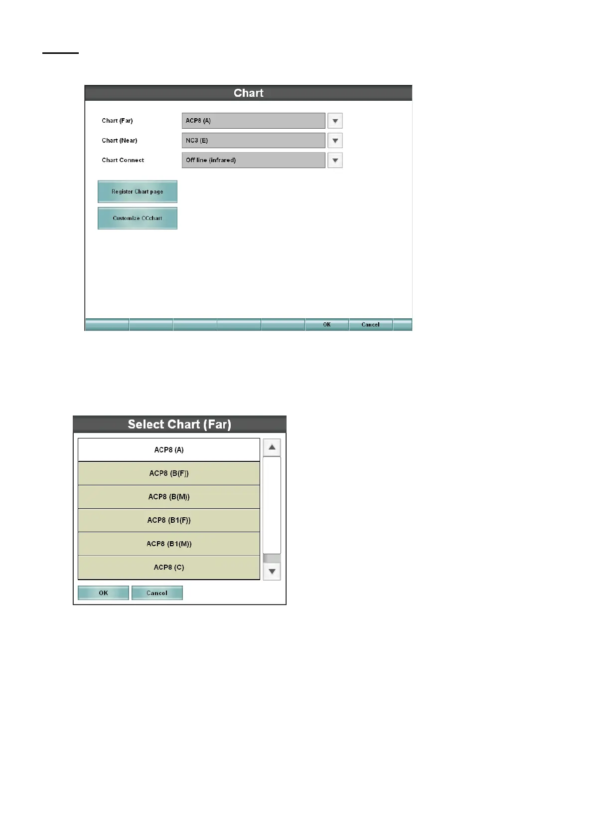 Touch the [down arrow] button, and the selection list of the chart devices is displayed.