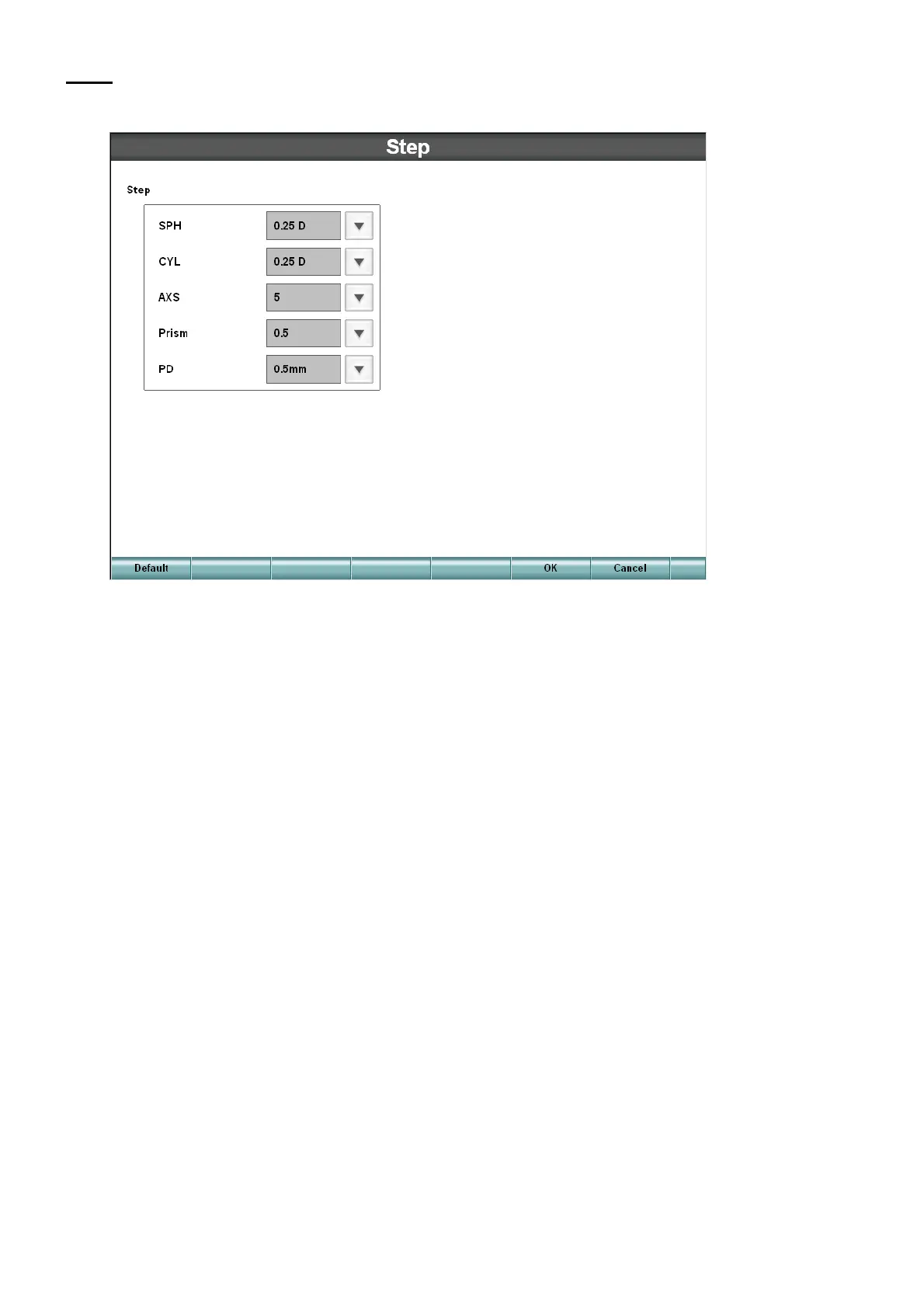 Set the step quantity when changing the refractive power by the controller.