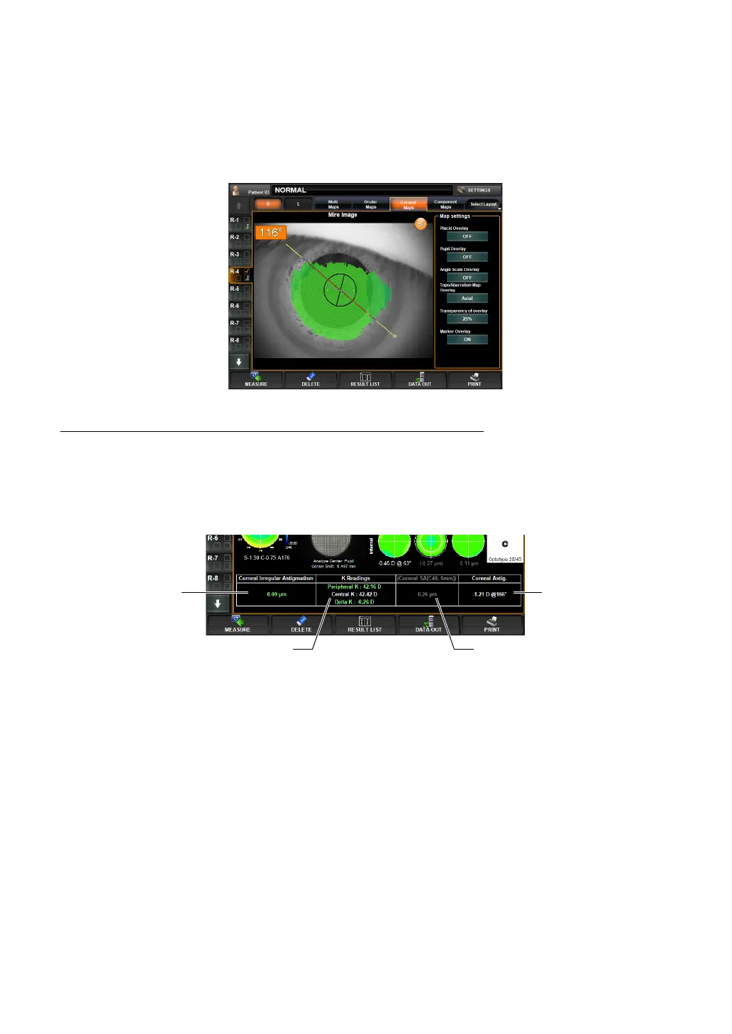 Each of the "Corneal Irregular Astigmatism (high order aberration)," "K Readings," "Corneal