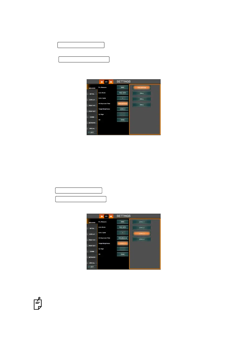 1 Tap the of the set item display "Target Brightness" of "MEASURE."