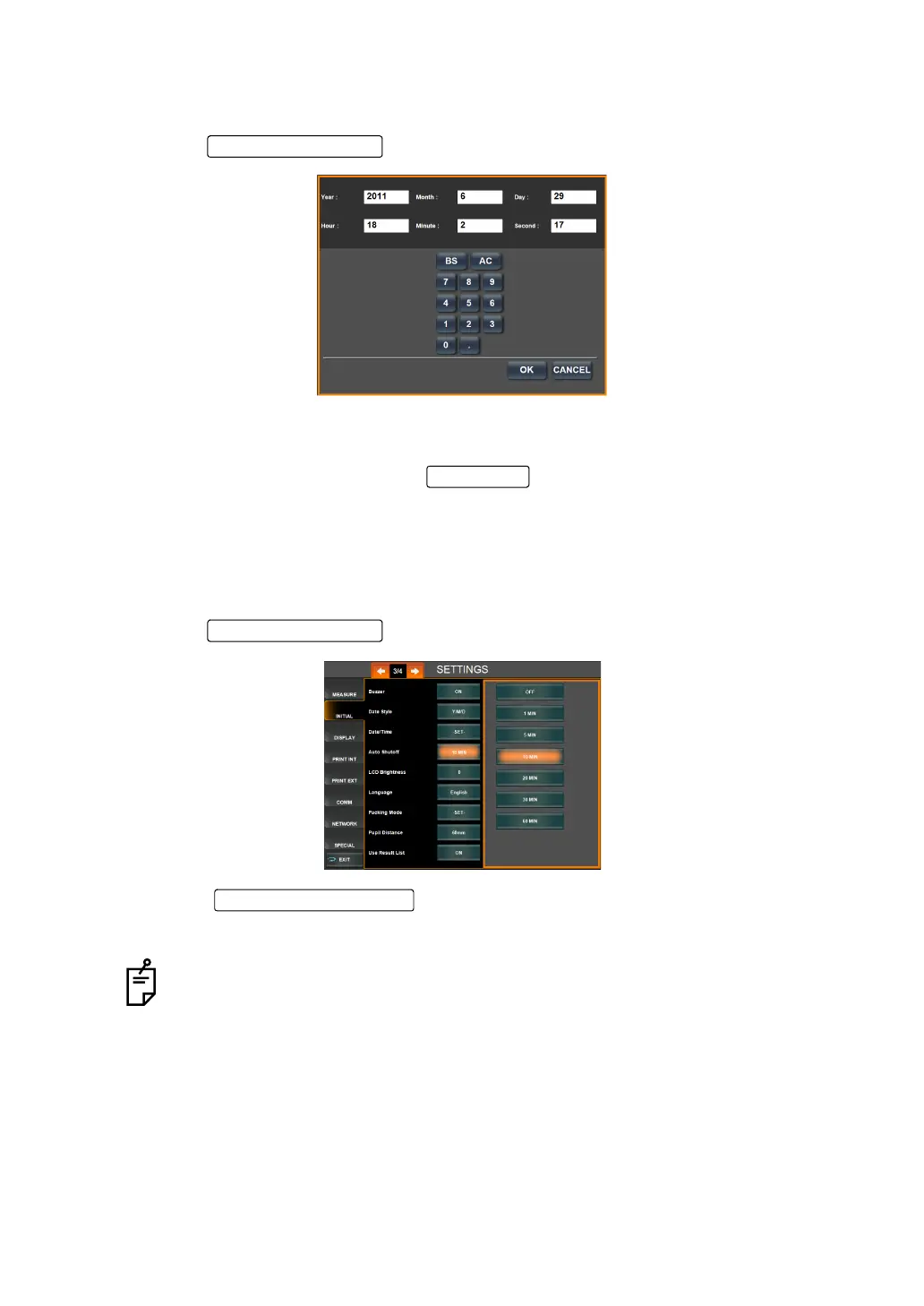 2 Tap and select the item to be set (year, month, day, hour, minute, second), and enter the