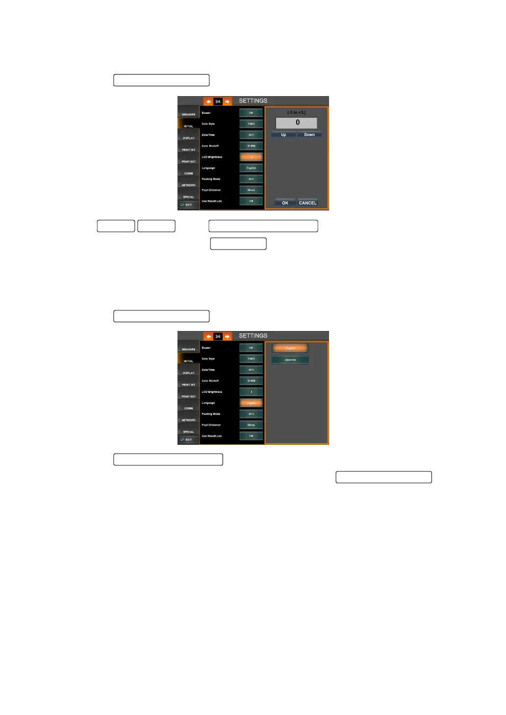 1 Tap the of the set item display "LCD Brightness" of "INITIAL."