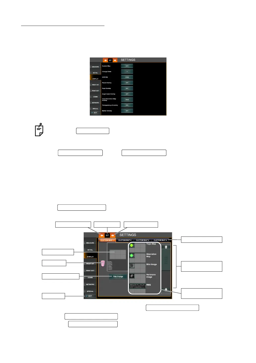 1 Tap the of the set item display "CUSTOM MAP" of "DISPLAY."