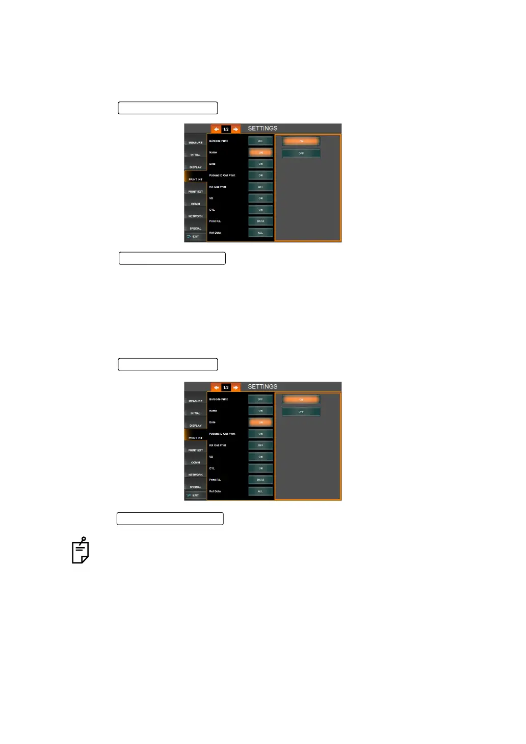 The measurement date can be displayed on the printout. Before shipment, the default setting