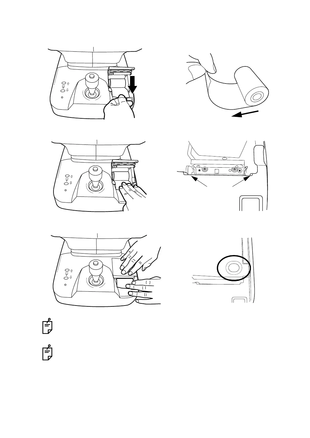 2 Set the paper into the shaft support; pay attention to the roll direction of paper. Pull the