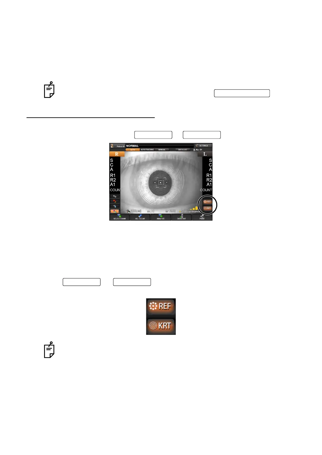 REF/KERATO measurement mode (REF button and KRT button are lit) :