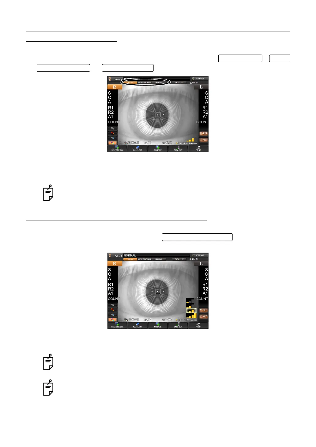 The fixation target brightness can be set in the Setup screen. Refer to page 126