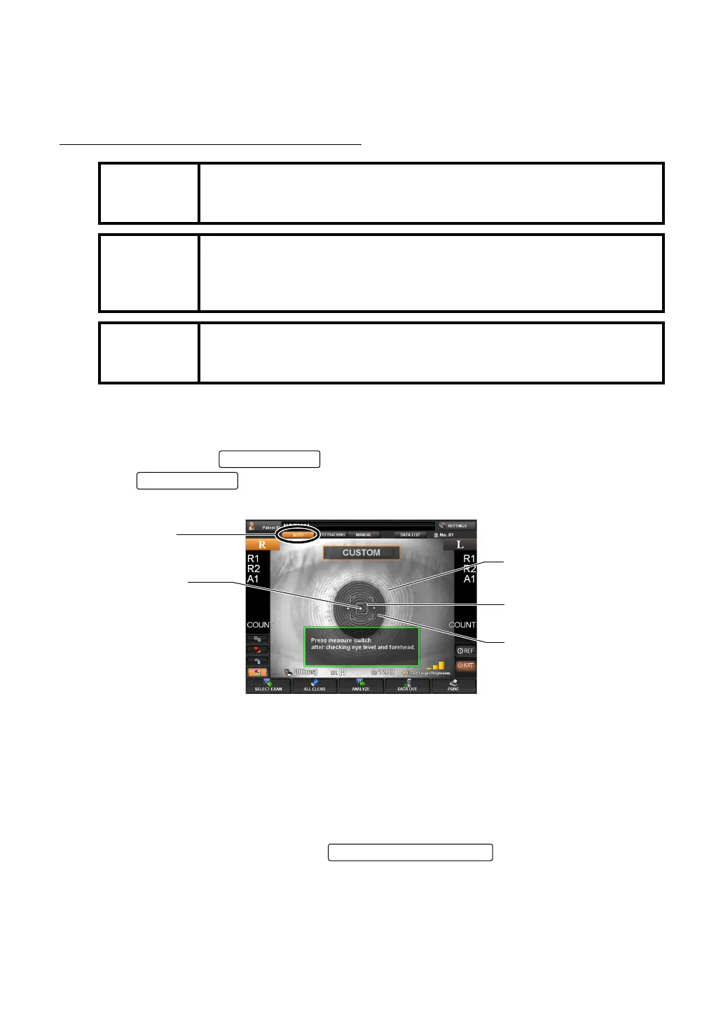 2 A message "Press measure switch after checking eye level and forehead." is displayed.