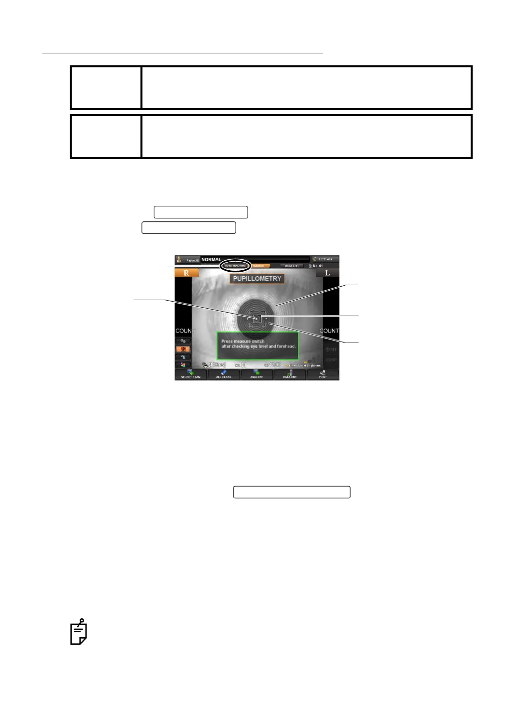 • If the image of the pupil is not shown on the screen, use the control lever to move the