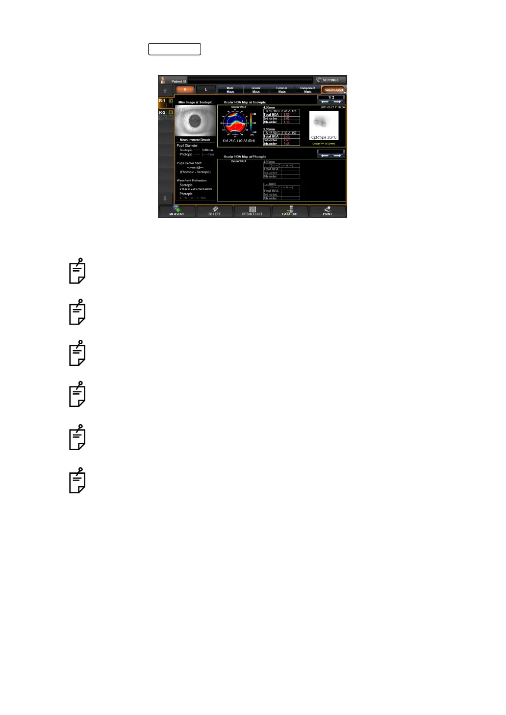 data measured under the Pupillometry mode can be checked on the Pupillometry map.