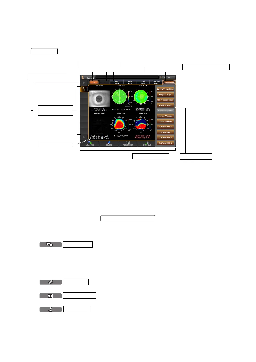 Hartmann Shack and Mire images of the patient's eye. After the measurement, tap the