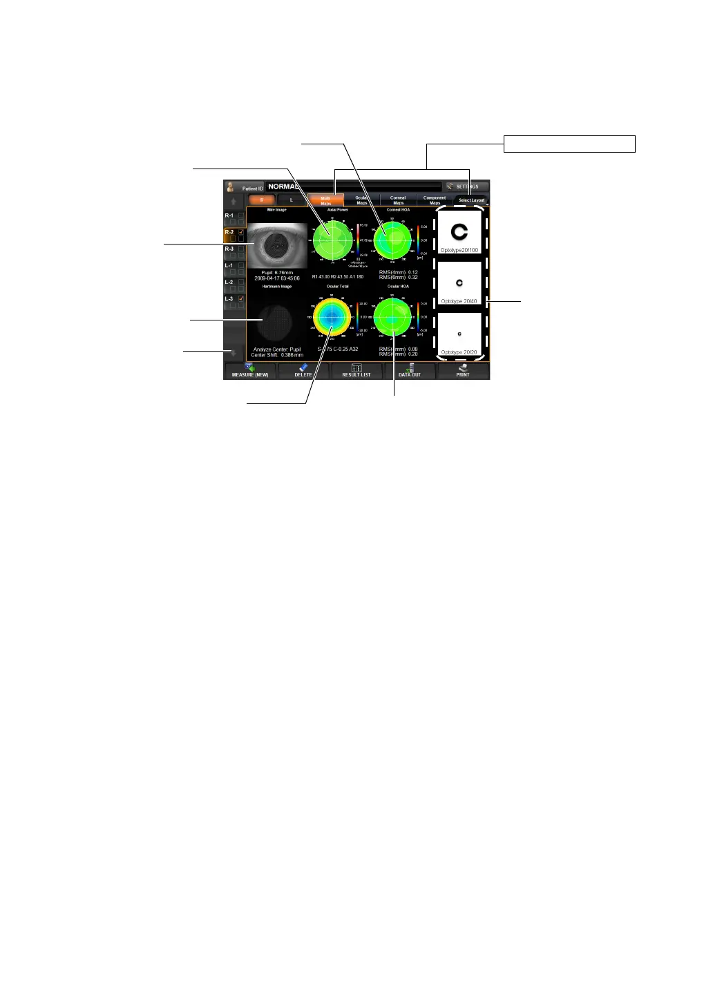 (3) Corneal HOA map A map to display corneal higher order aberrations (e.g. irregular