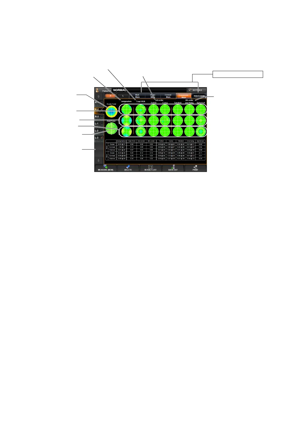 (4) Corneal HOA map (See "Corneal High Order Aberration Map" on page 79.)