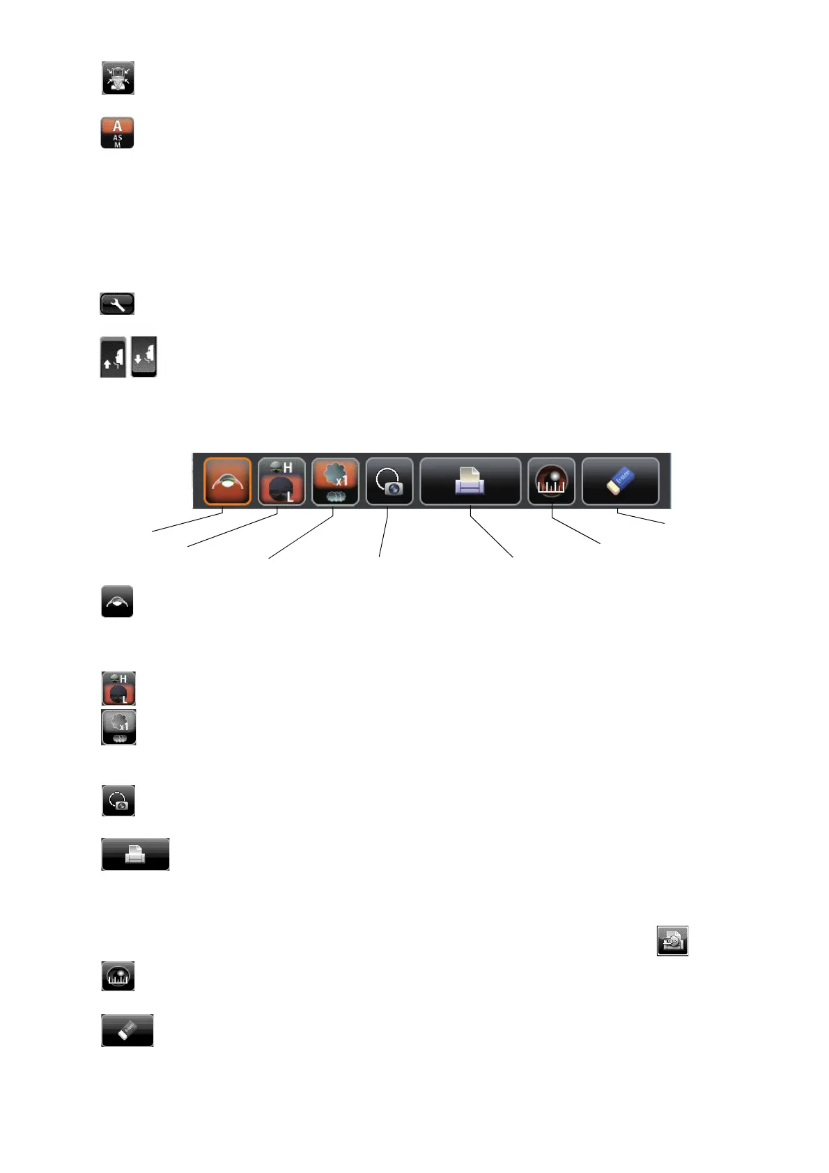 Cornea diameter button............................Changes to cornea diameter measurement mode.