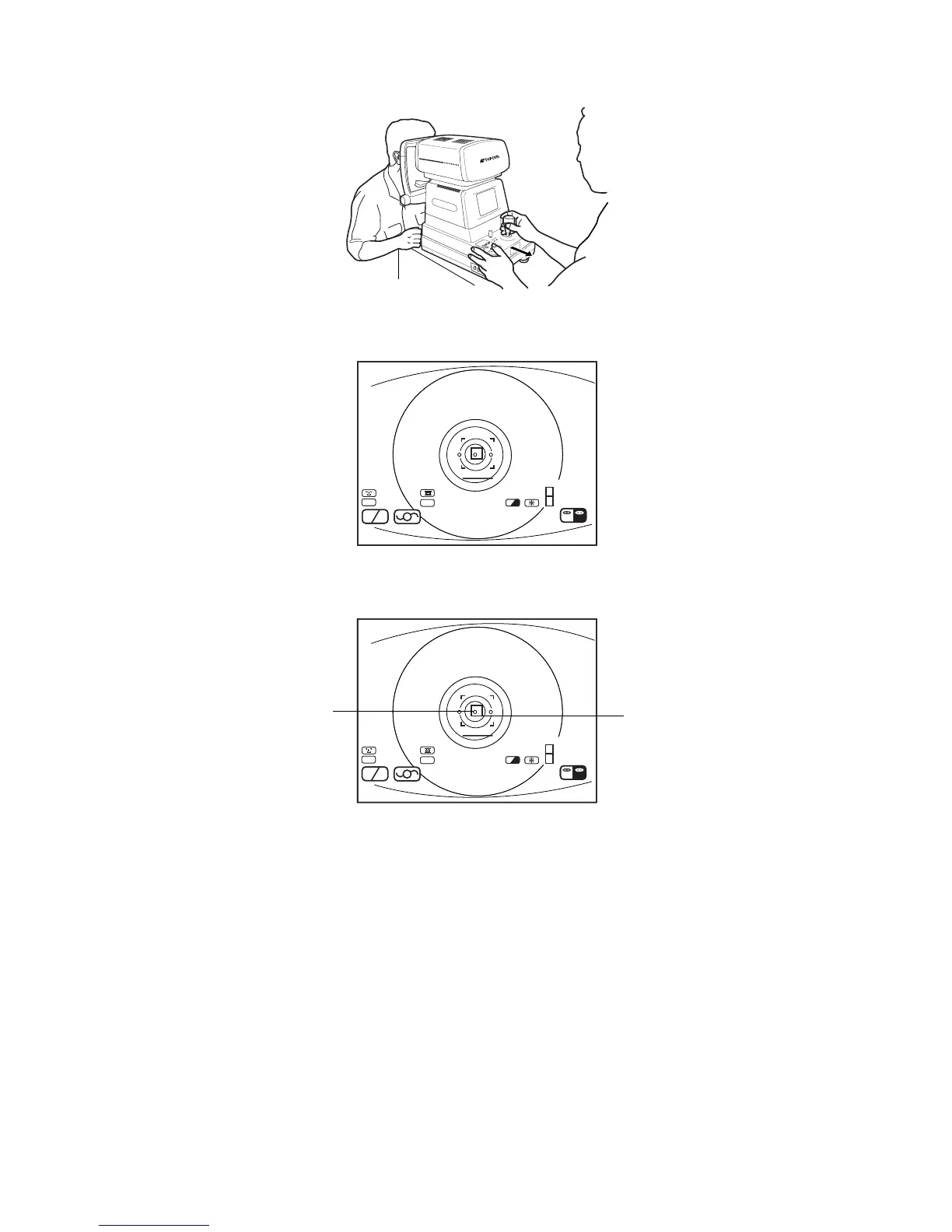 3 While moving the main body toward the patient, focus the target eye.