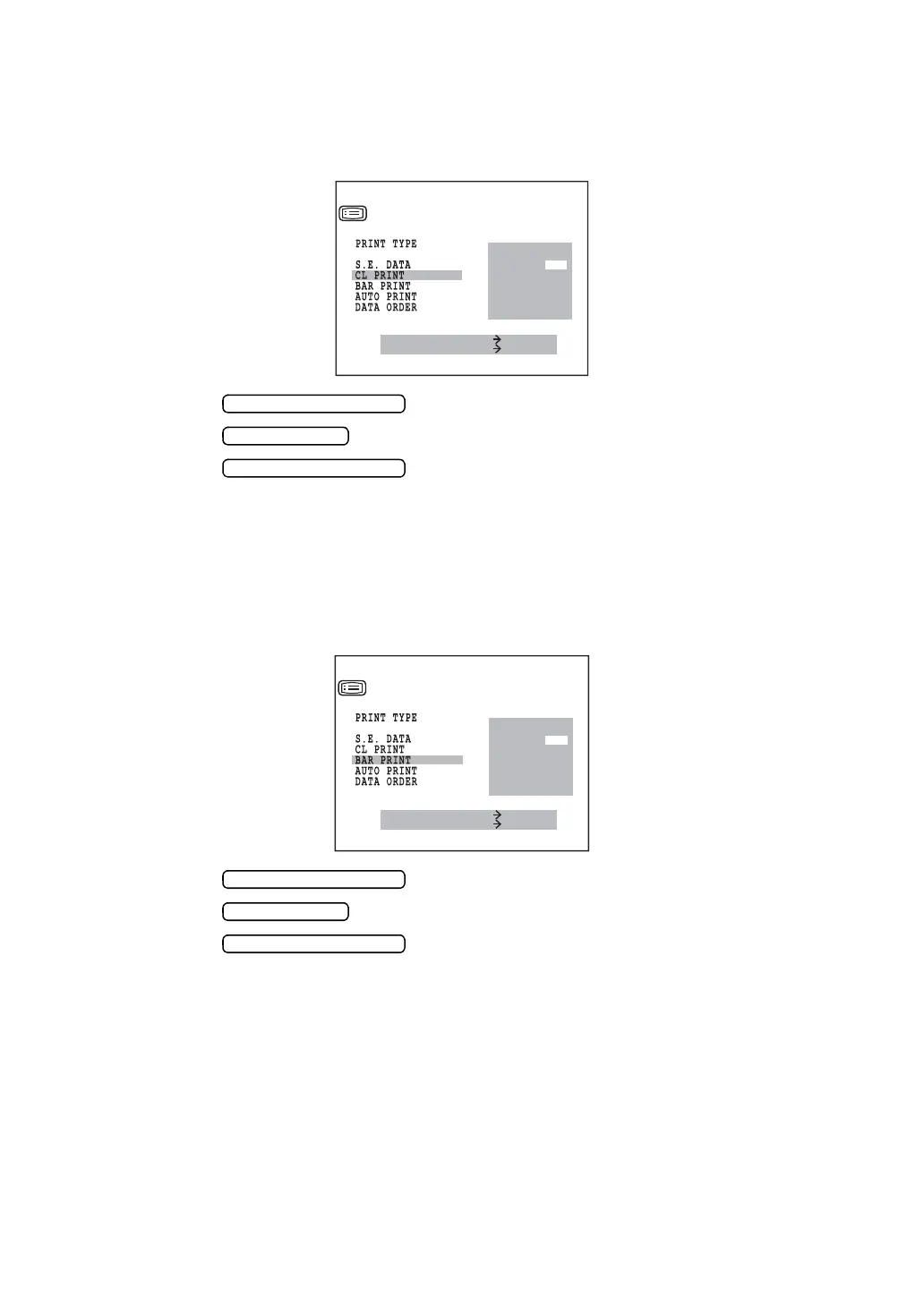 2 Press the and move the cursor to “CL PRINT”.