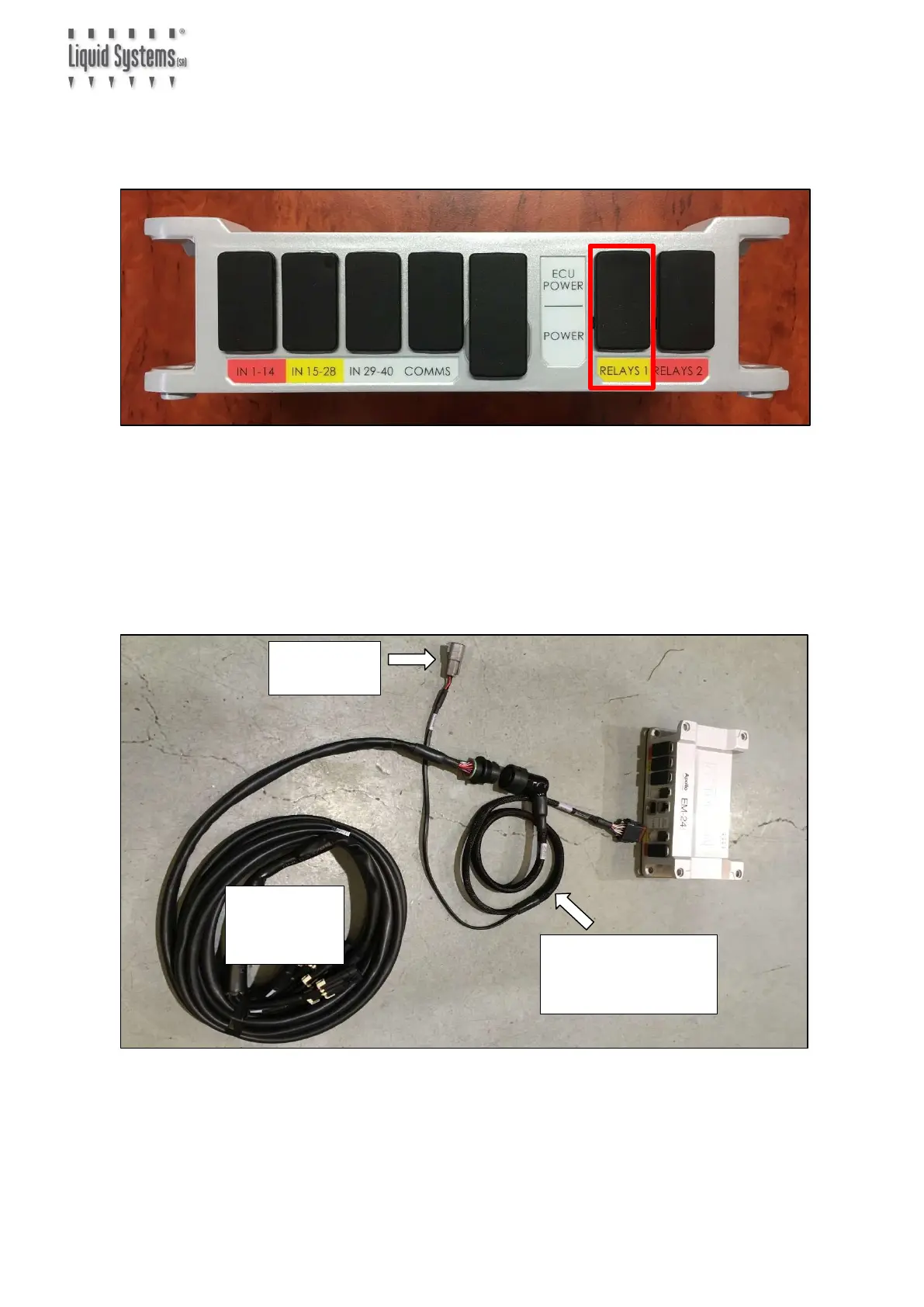 4. Plug Apollo EM-24 Section Adapter Loom (TC-1013025-01) into Relays 1 port on EM-24