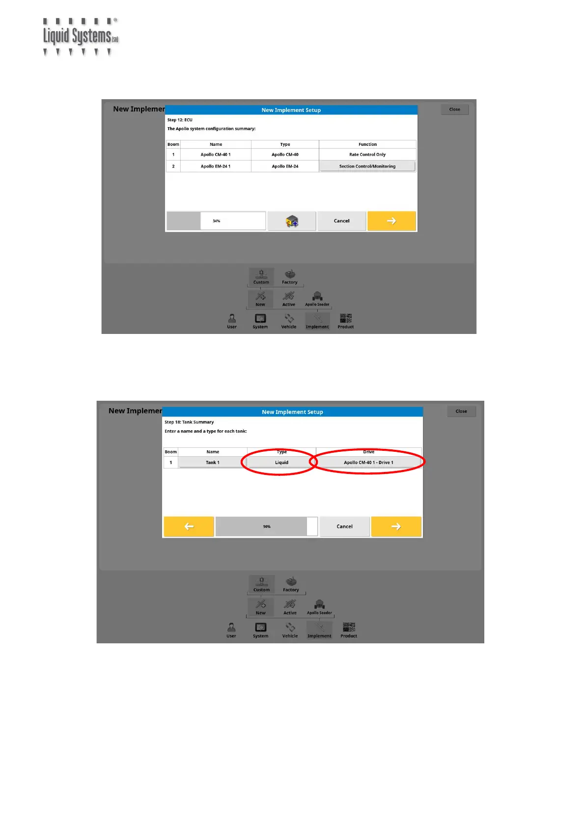 Select Liquid for the appropriate tank and which drive for each tank according to the port