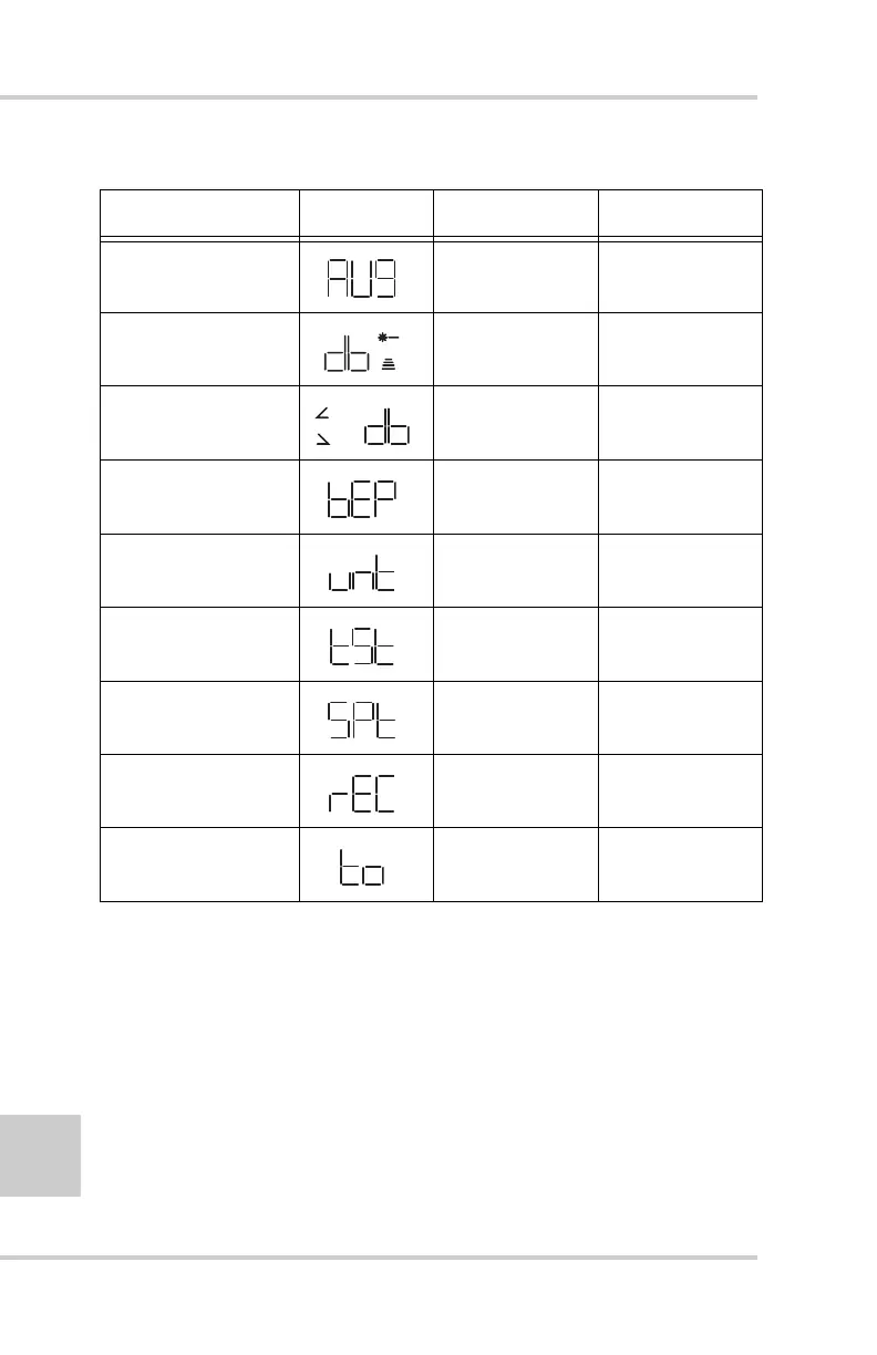 Menu LED Symbol Range Factory Setting