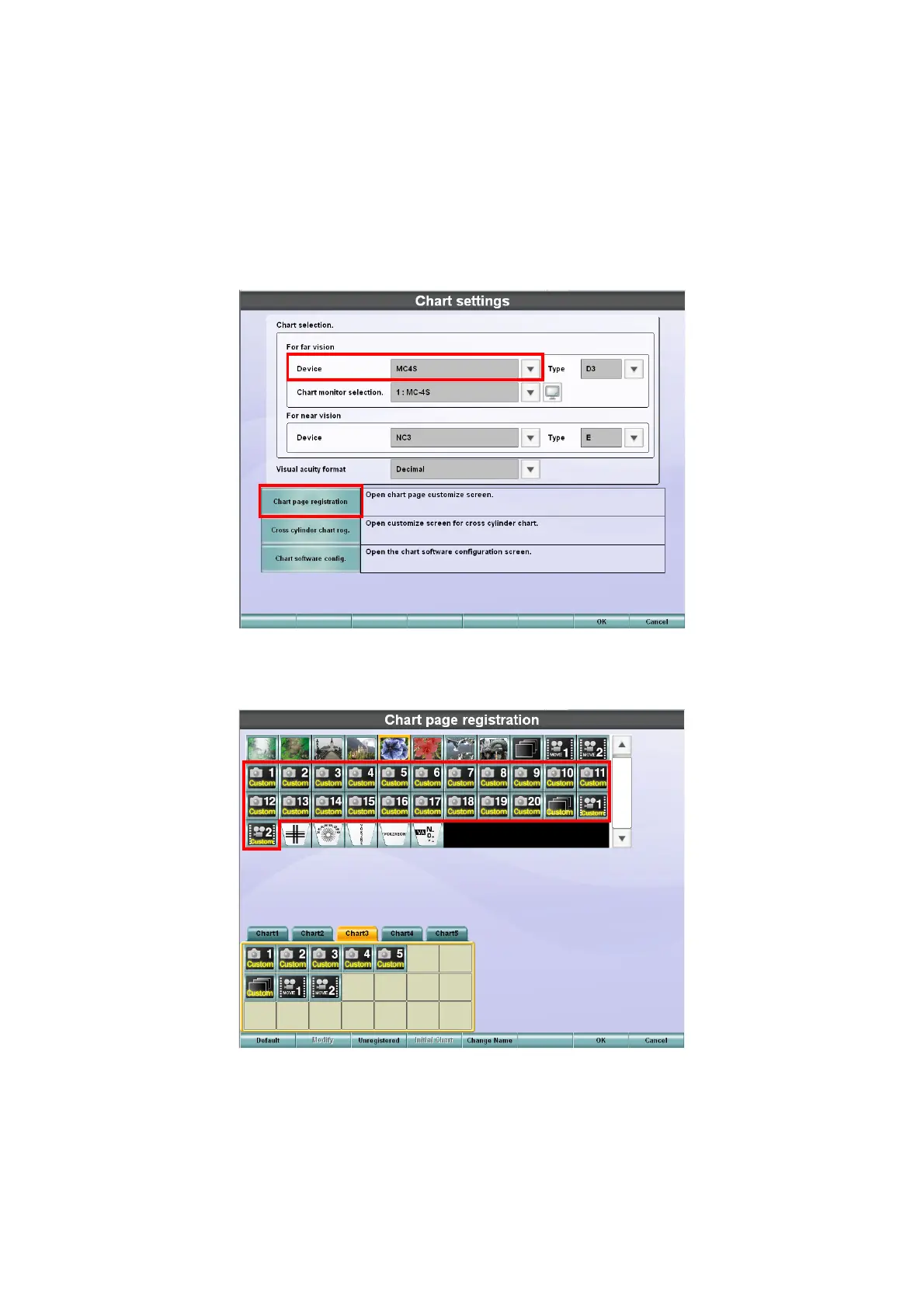 4 The "Chart page registration" screen is displayed.