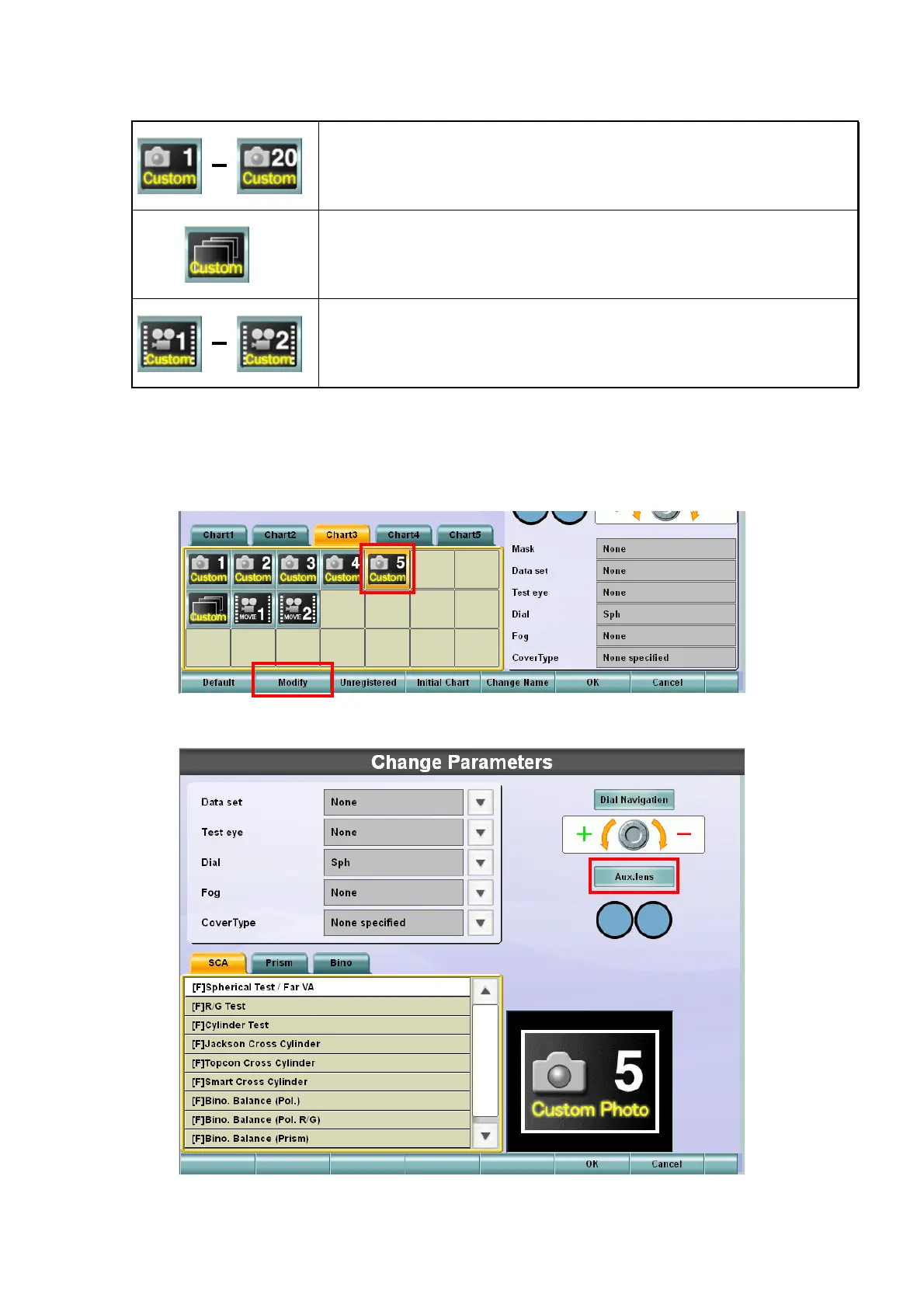 Select the icon to be registered as the 3D still image from the chart page and touch the [Modify]