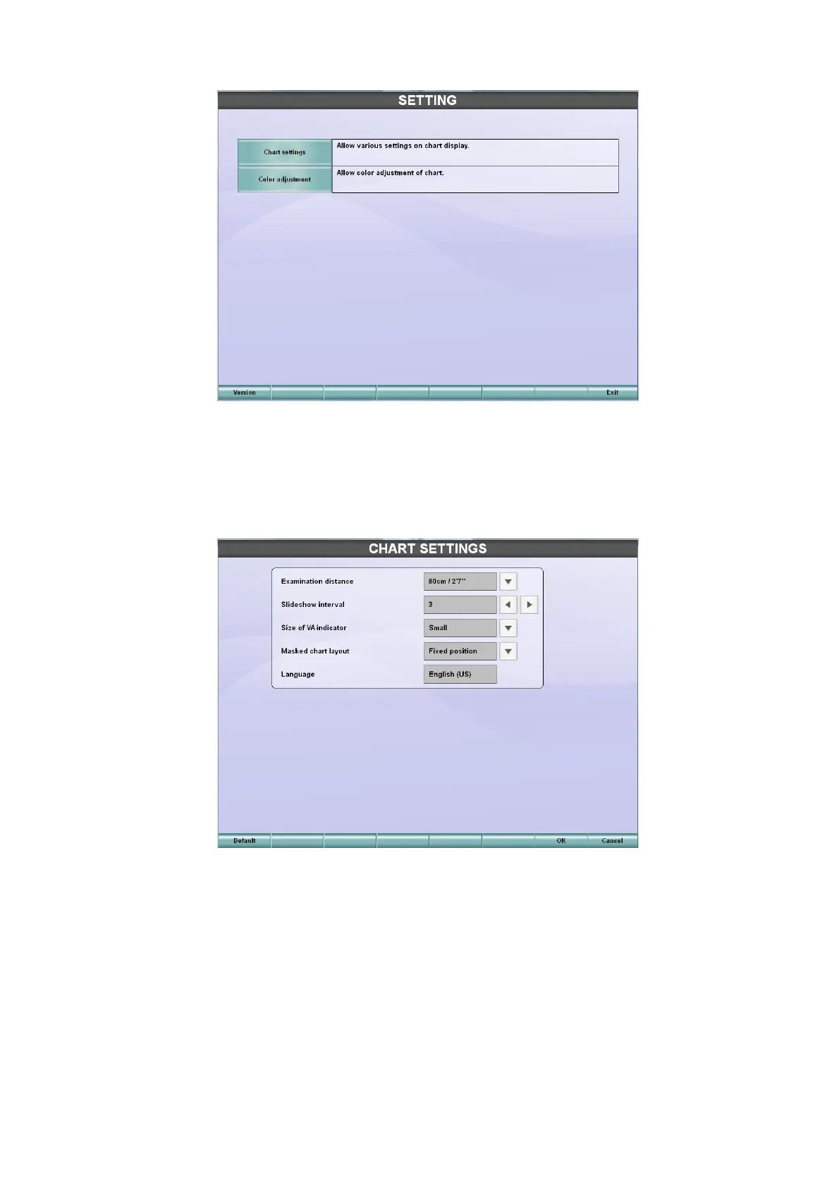 Touch the [Chart settings] button on the "SETTING" menu of the MC-4S, and the "CHART SETTINGS"