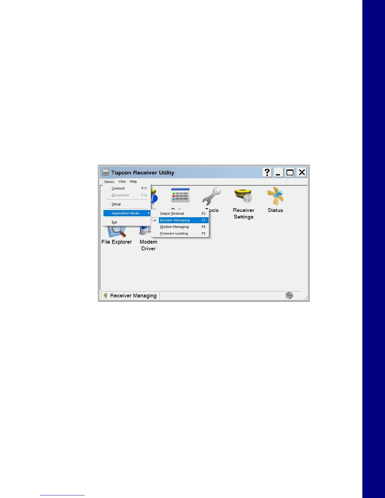 To perform a Factory Reset using Topcon Receiver Utility (TRU):