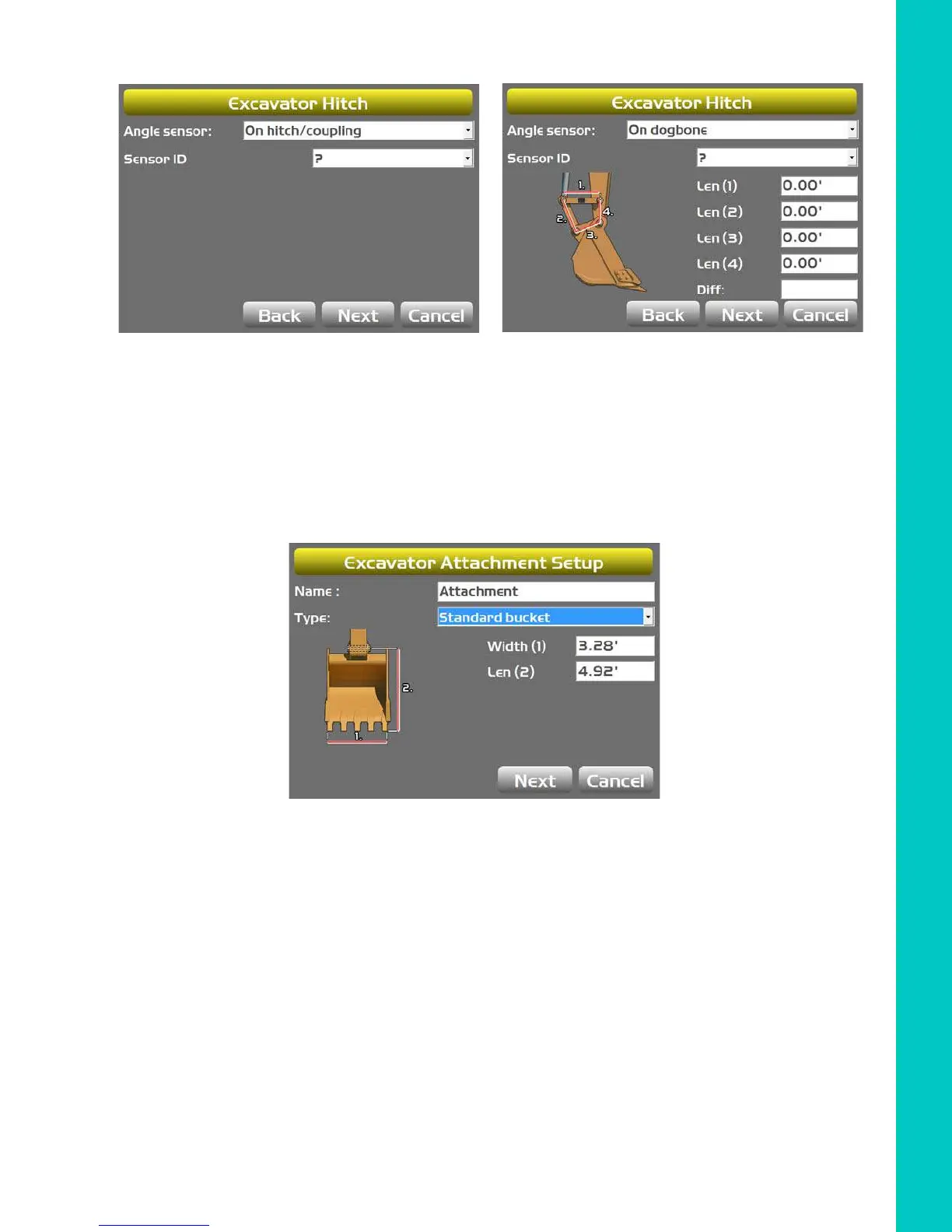c. Press Next to access the Calibrate Attachment Angle screen (calibration performed