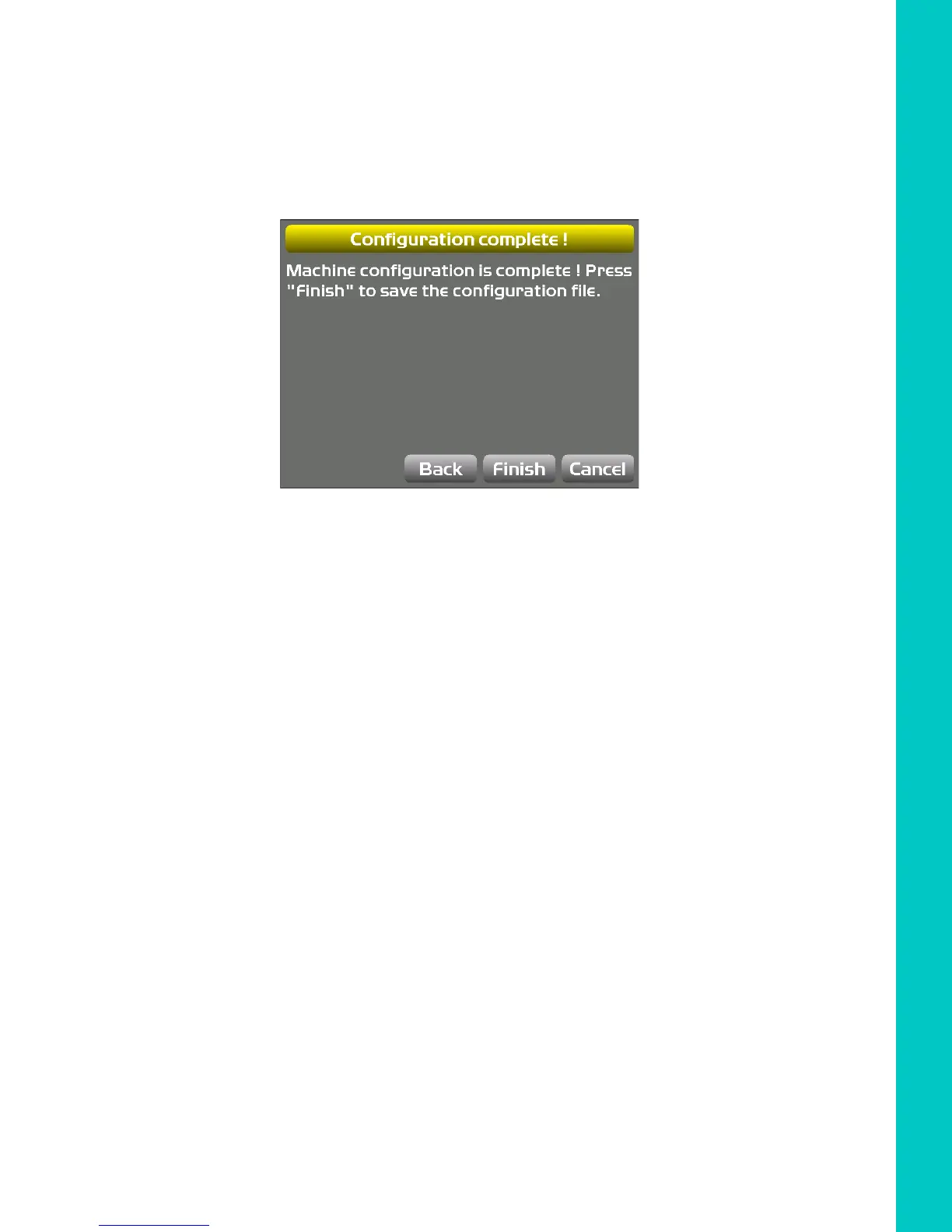 2. Press Finish to save configuration, or press Cancel to return to the Machine Files screen