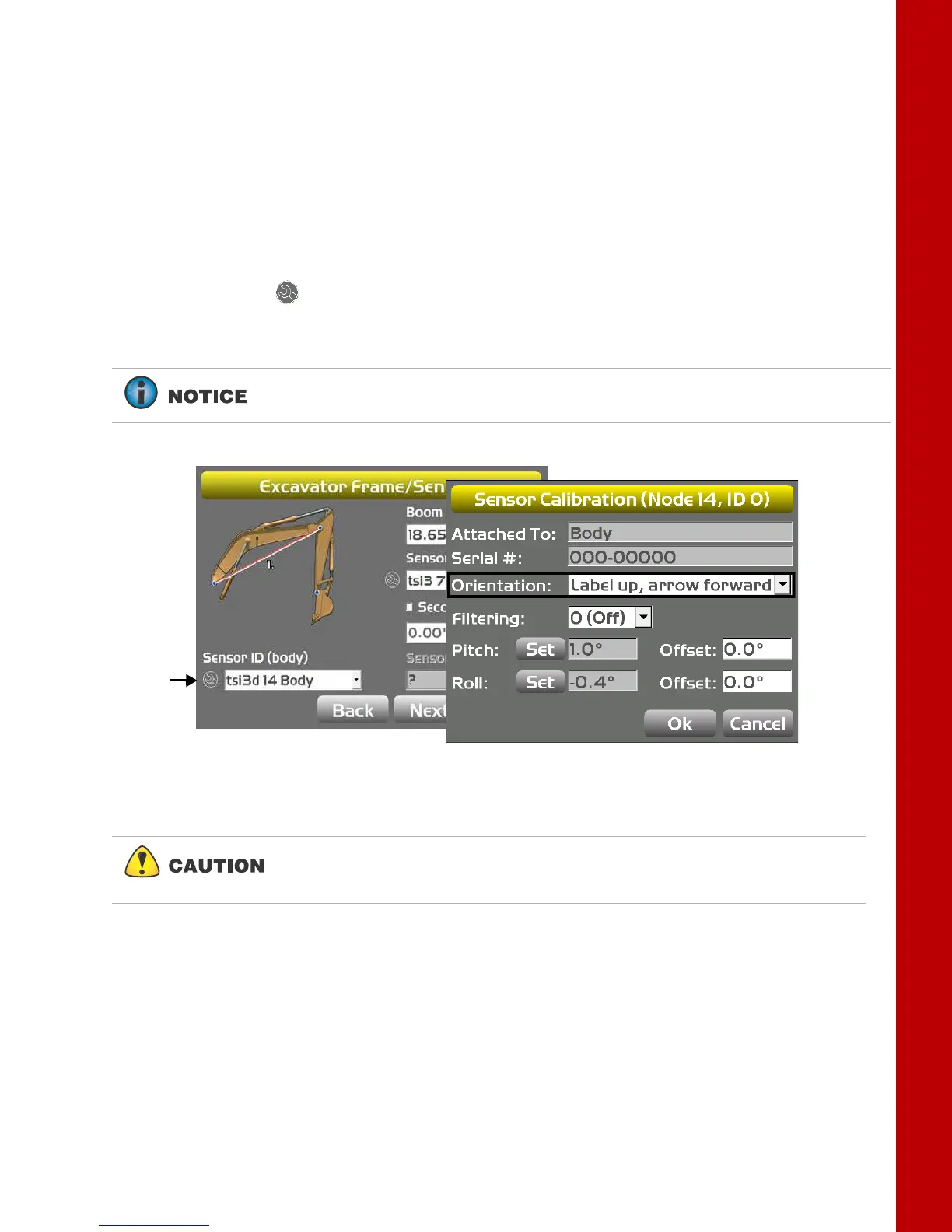 3. Continue to press Next to access the Excavator Frame/Sensors screen.