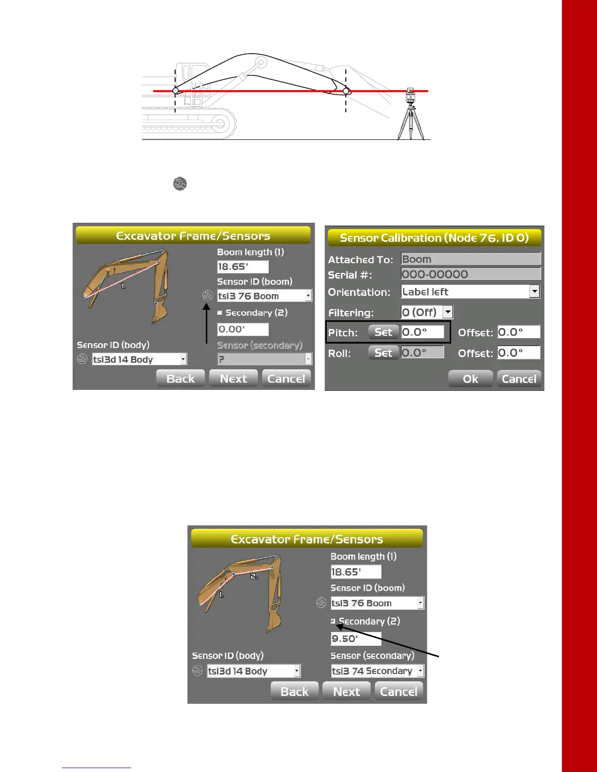 instructions on calibrating the secondary boom sensor.