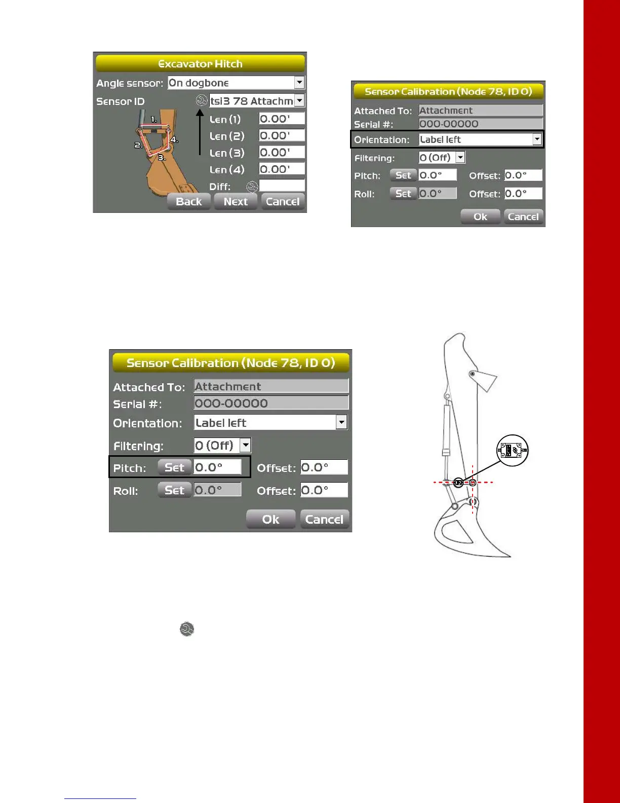 3. Set the DogBone pivot pin and the bucket pivot pin vertical with either a plumb bob or a survey