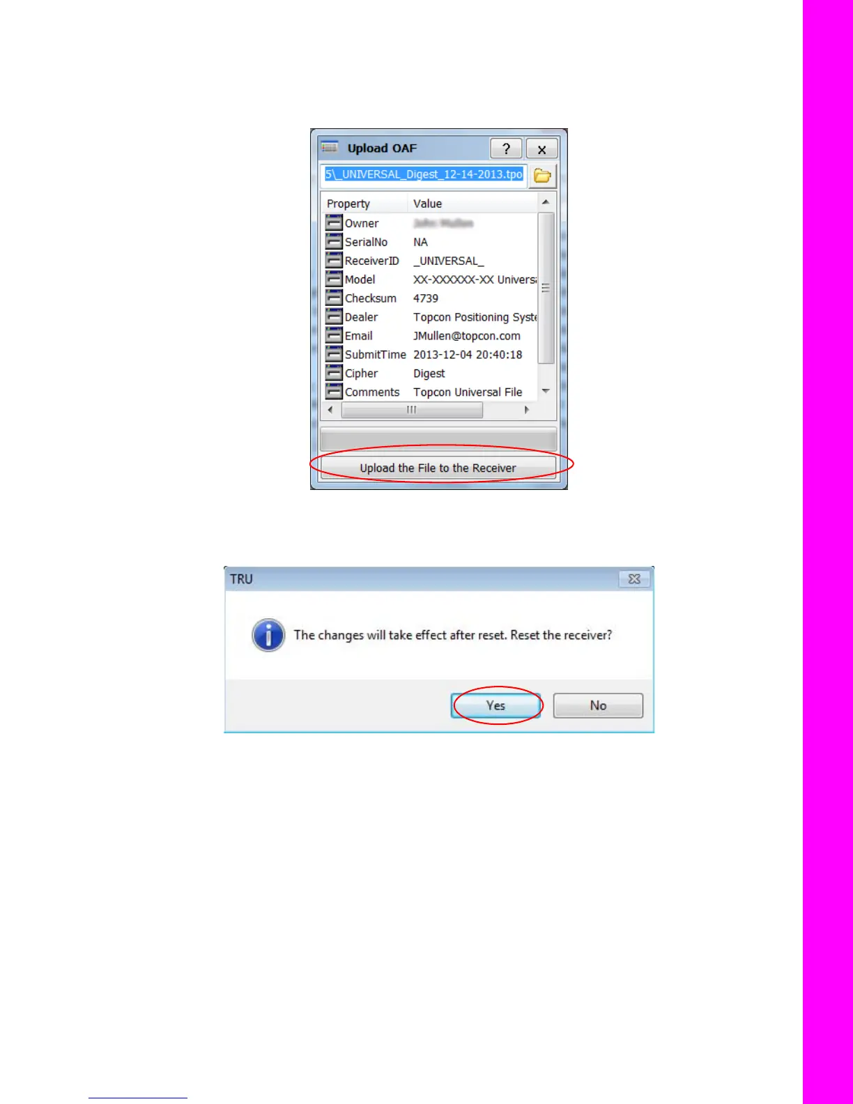 Topcon’s TRU initially checks to see if the selected file is compatible with the currently connected receiver. If