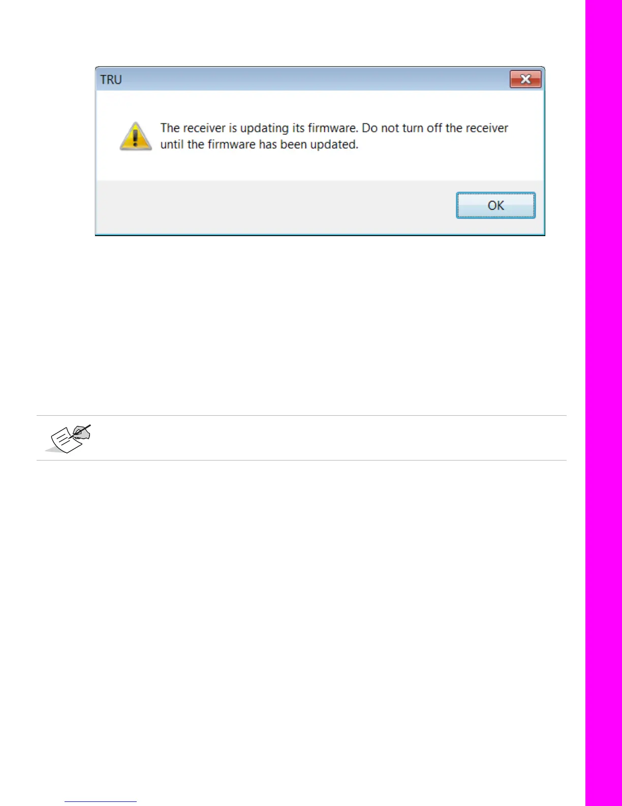 12. When the upload ends, click Finish. A prompt appears indicating that the receiver is updating firmware