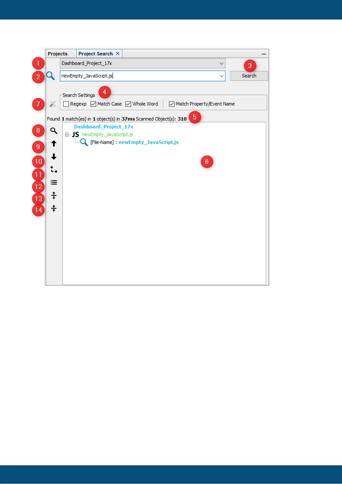 8. Latching button: show detailed search results. (property/event matches)