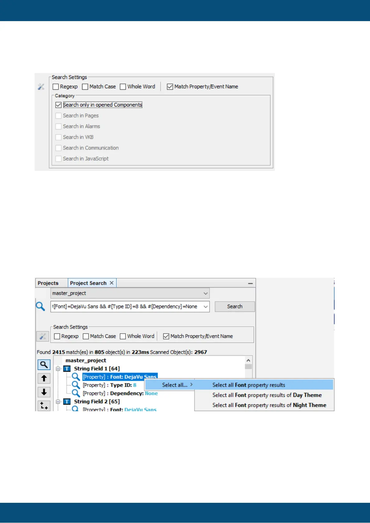 Now the Font property of all found objects can be selected, by right-clicking the Font property