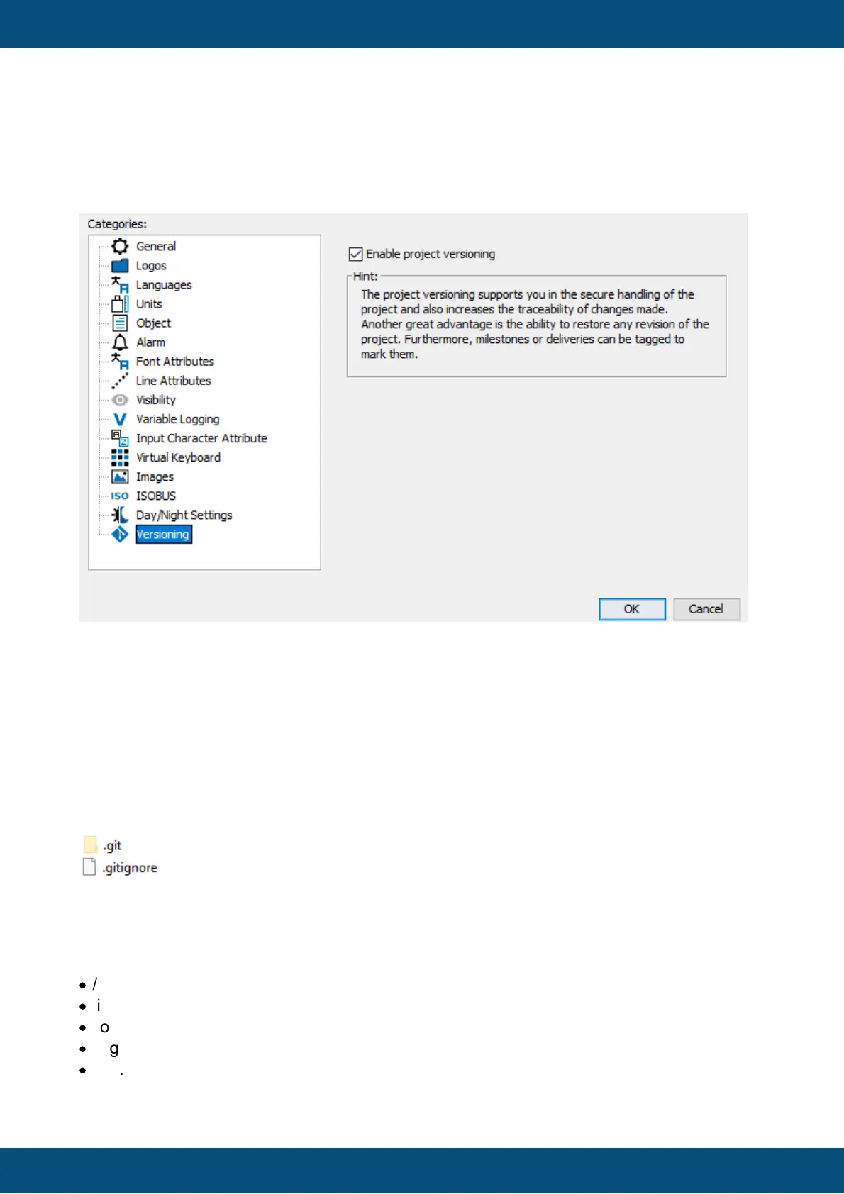 If you enabled versioning for a new or existing project, a folder and a file will be added to the