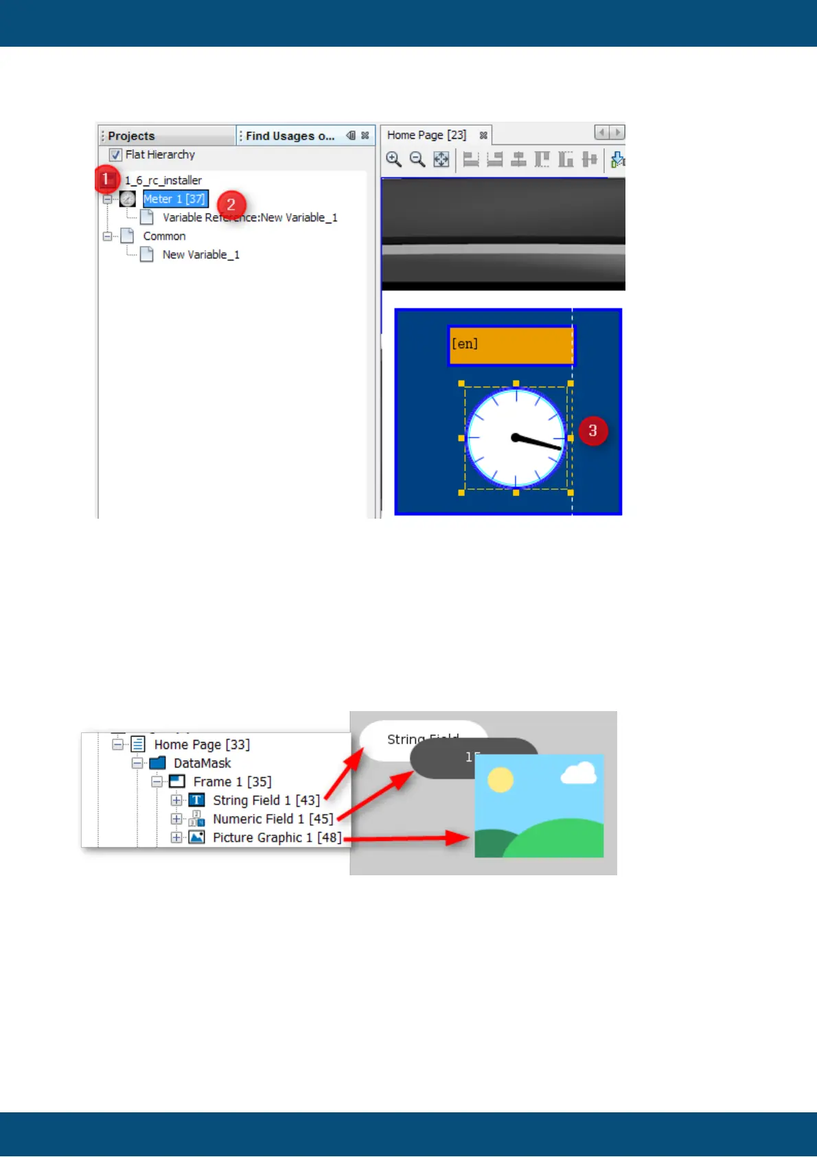 To jump directly to the found page double click directly on the object (2) in the tree (1). This
