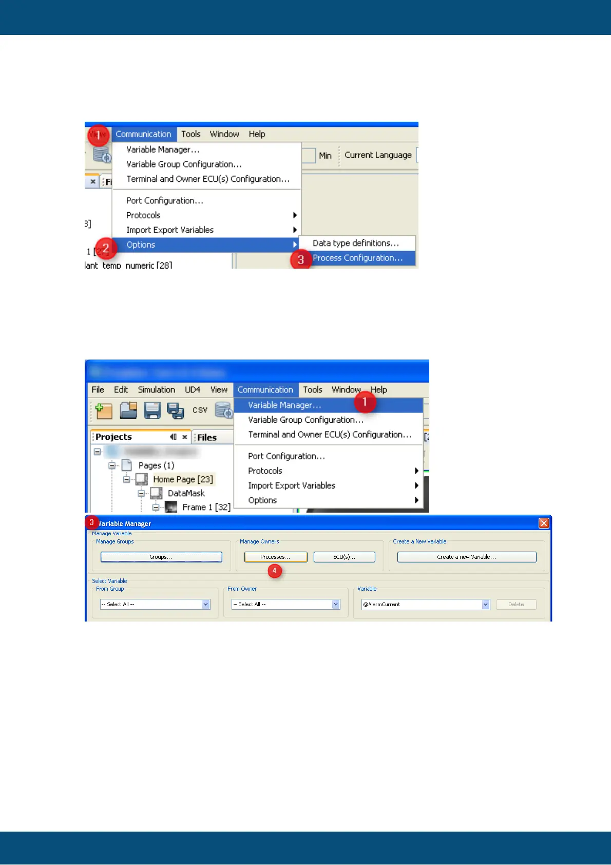 Open Process Configuration from Variable Manager