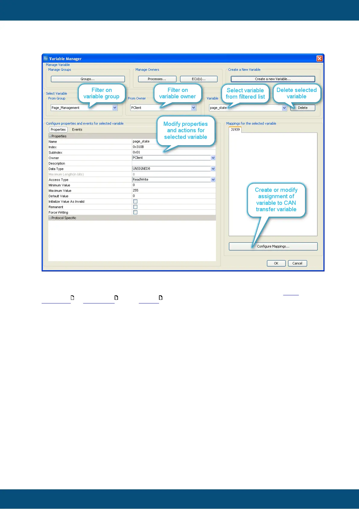 The configuration of CAN mappings is explained with the CAN protocols, see CAN