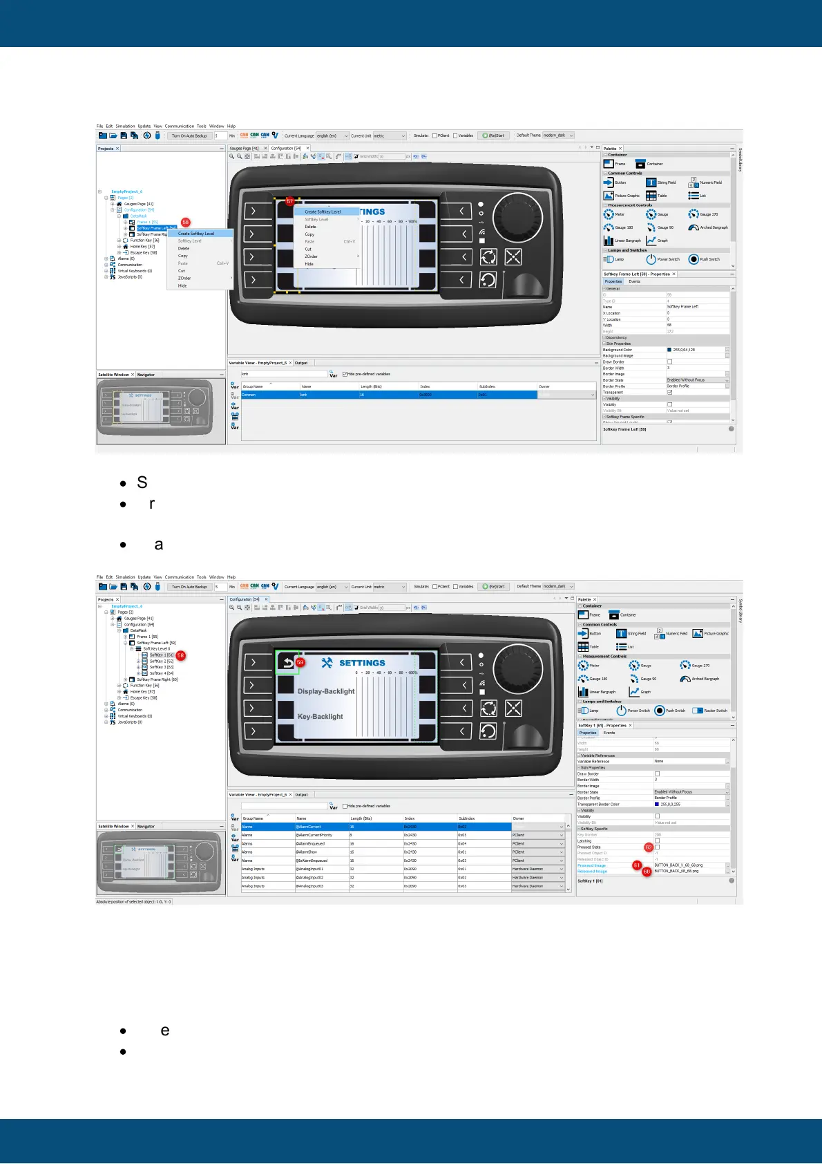 Select the first Softkey in the project tree (58)upper left or in the editor (59)