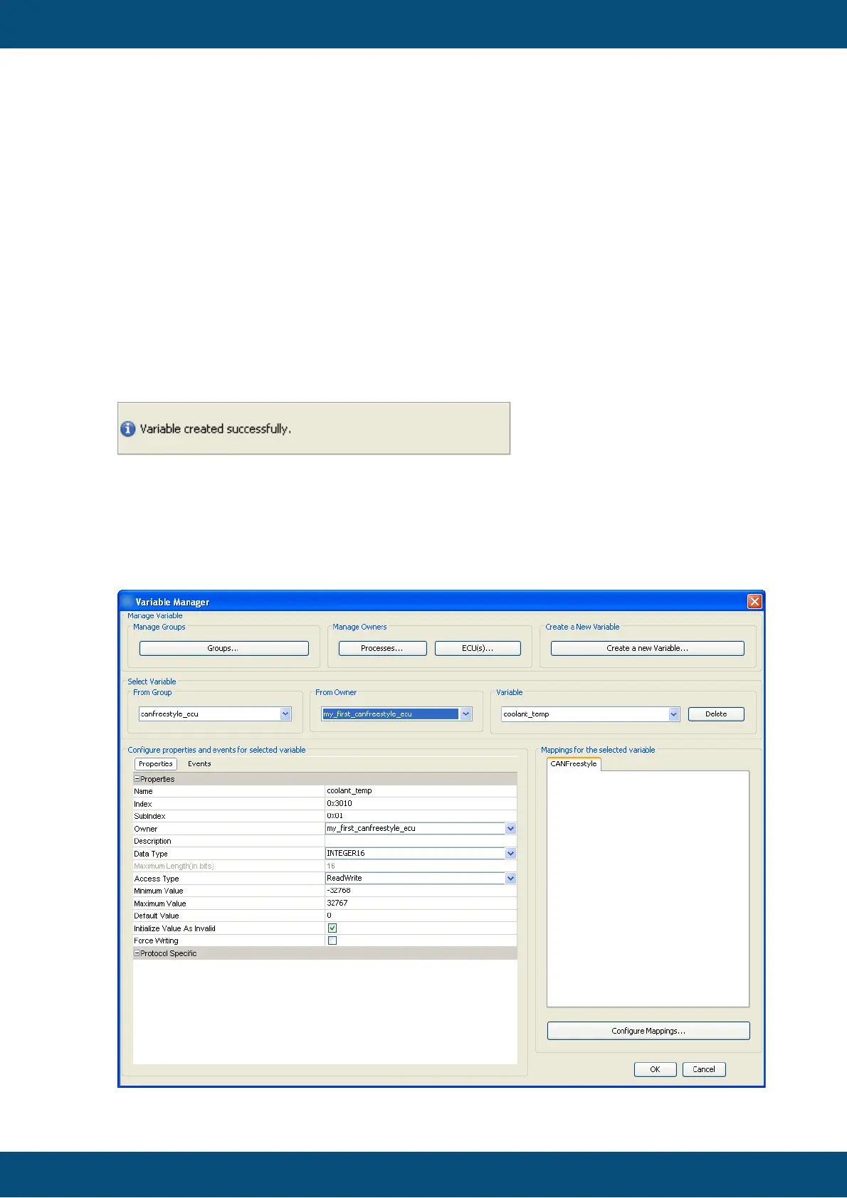 variable(s) just created or already existing in "Variable Manager" dialog: