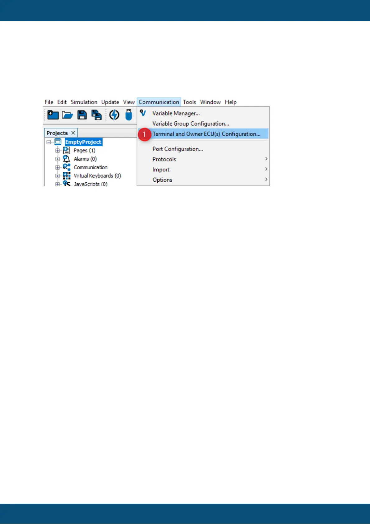 To set up the CANopen protocol go to menu communication-> Terminal and Owner ECU(s)