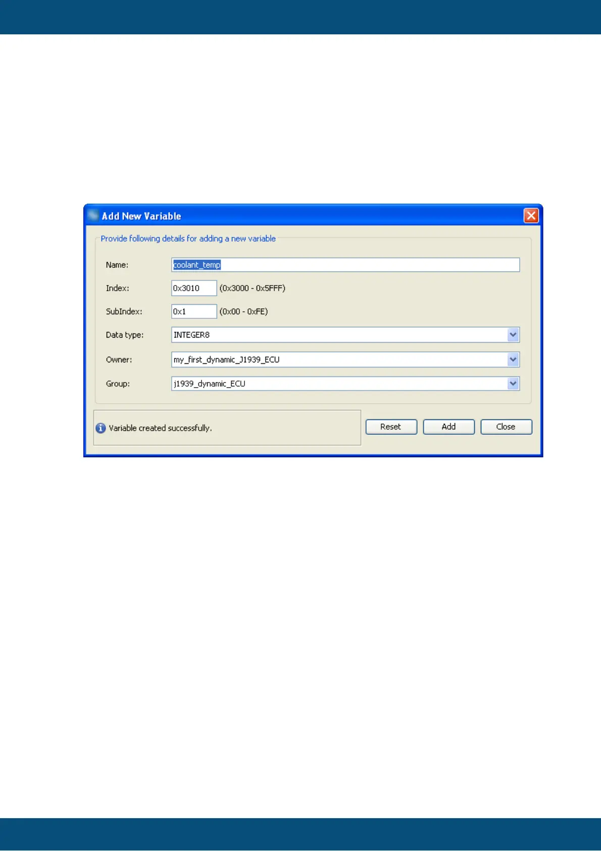 10.Change owner from default "PClient" to the newly created J1939 ECU. Note: If