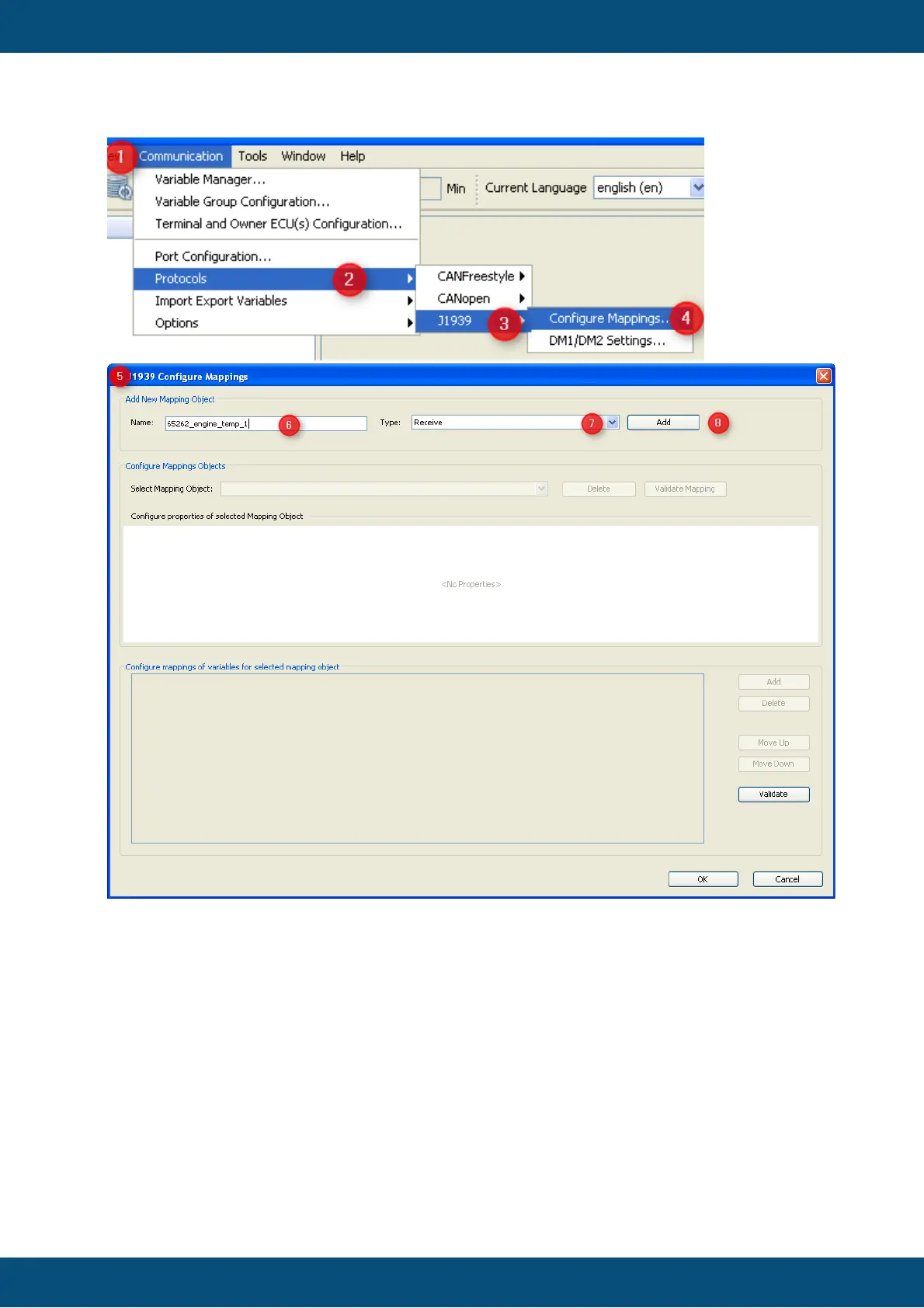 5. The "J1939 Configure Mappings" dialog will pop up.