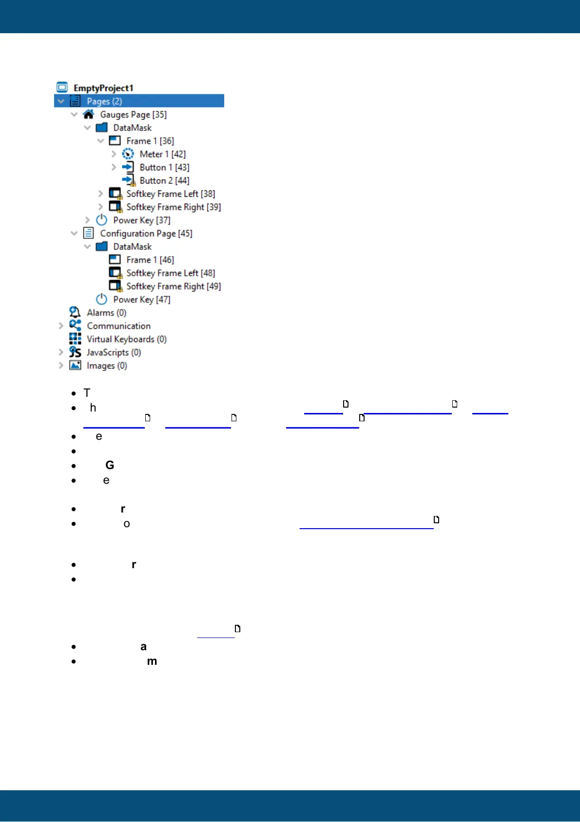 The Gauges Page has a DataMask (i.e. an empty drawing area) and a Power Key.