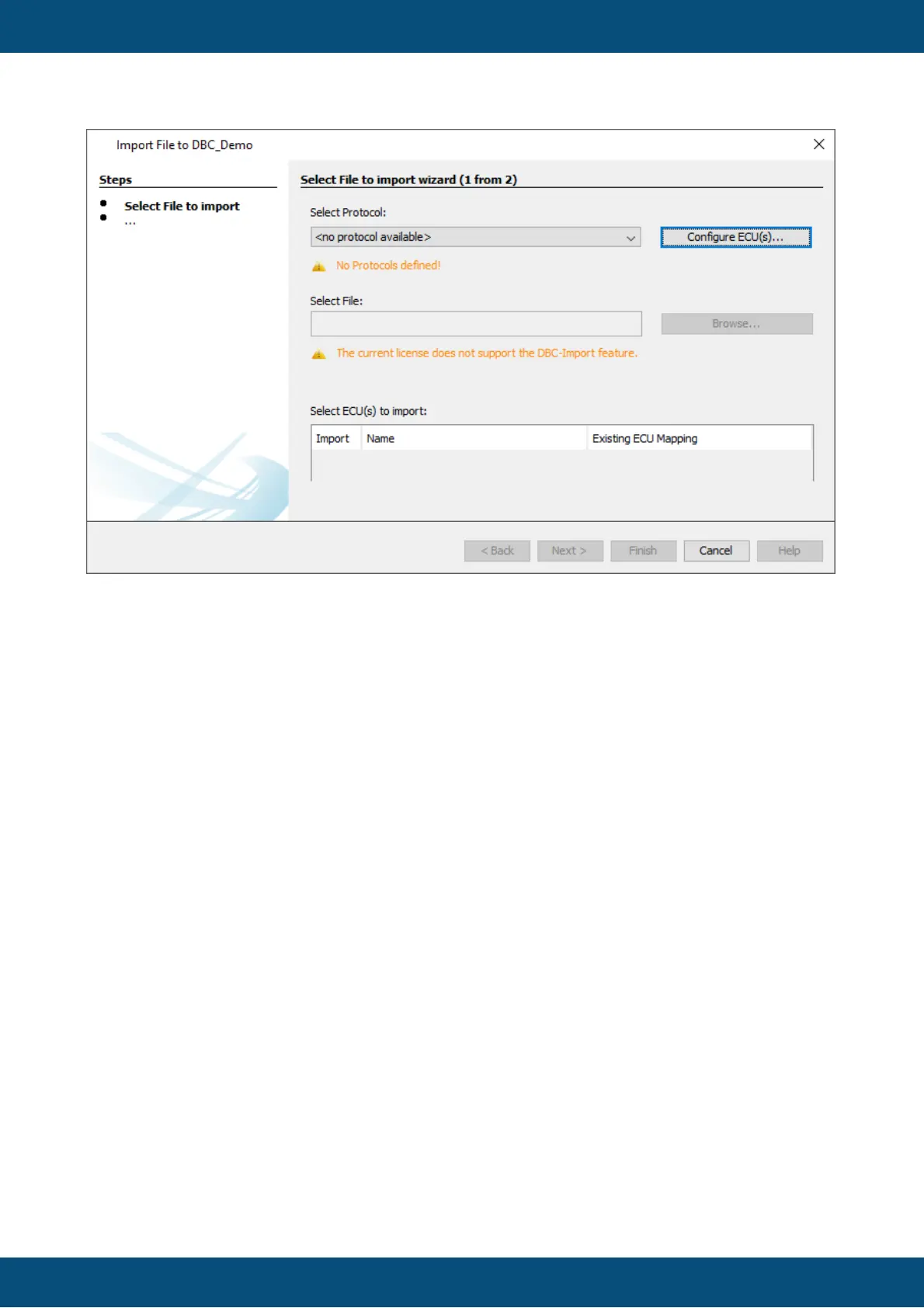 In the first step, a CAN protocol needs to be chosen and a DBC file is selected.