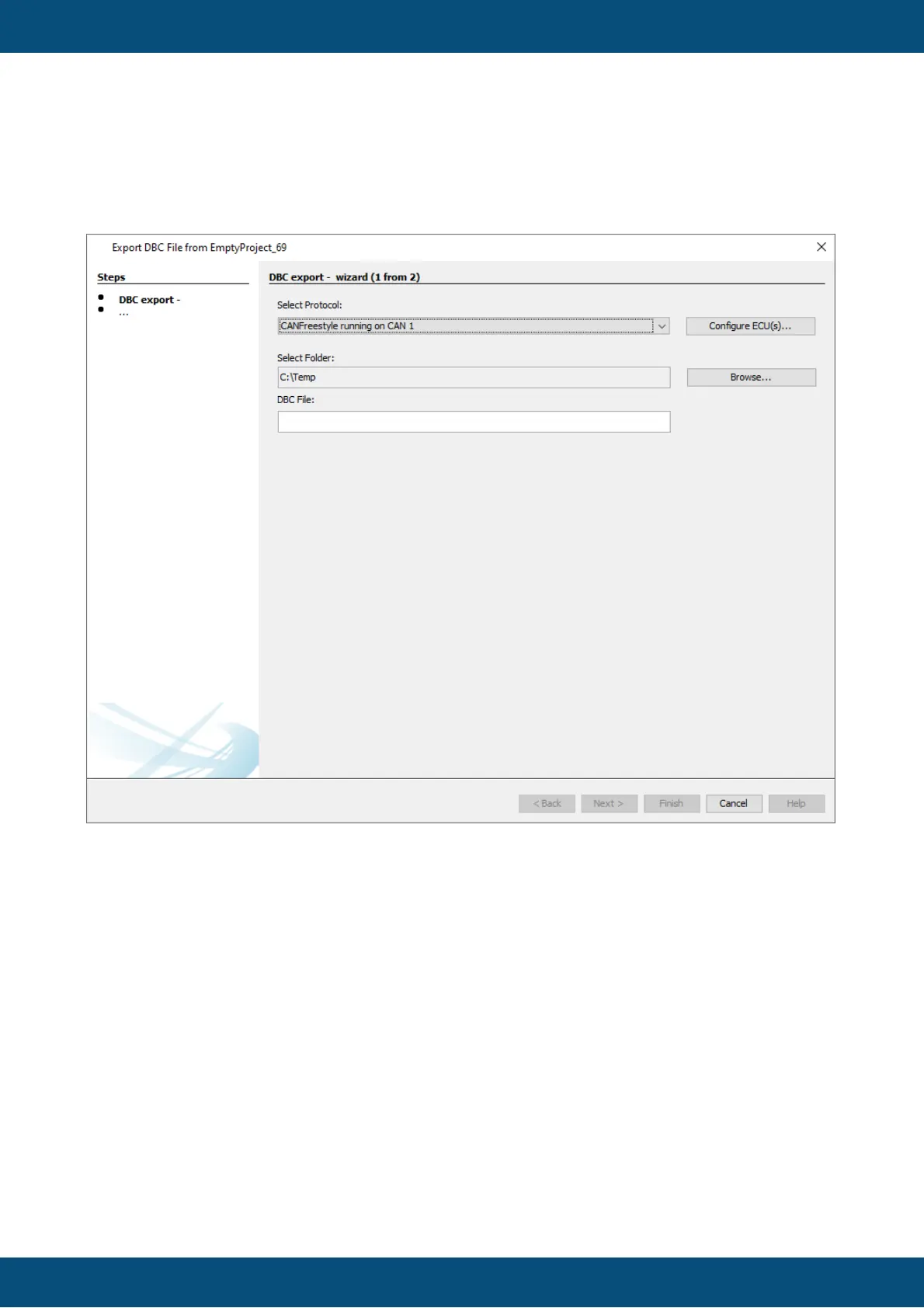 If no CAN protocol has been added to the project, an export of a DBC file isn't possible, so