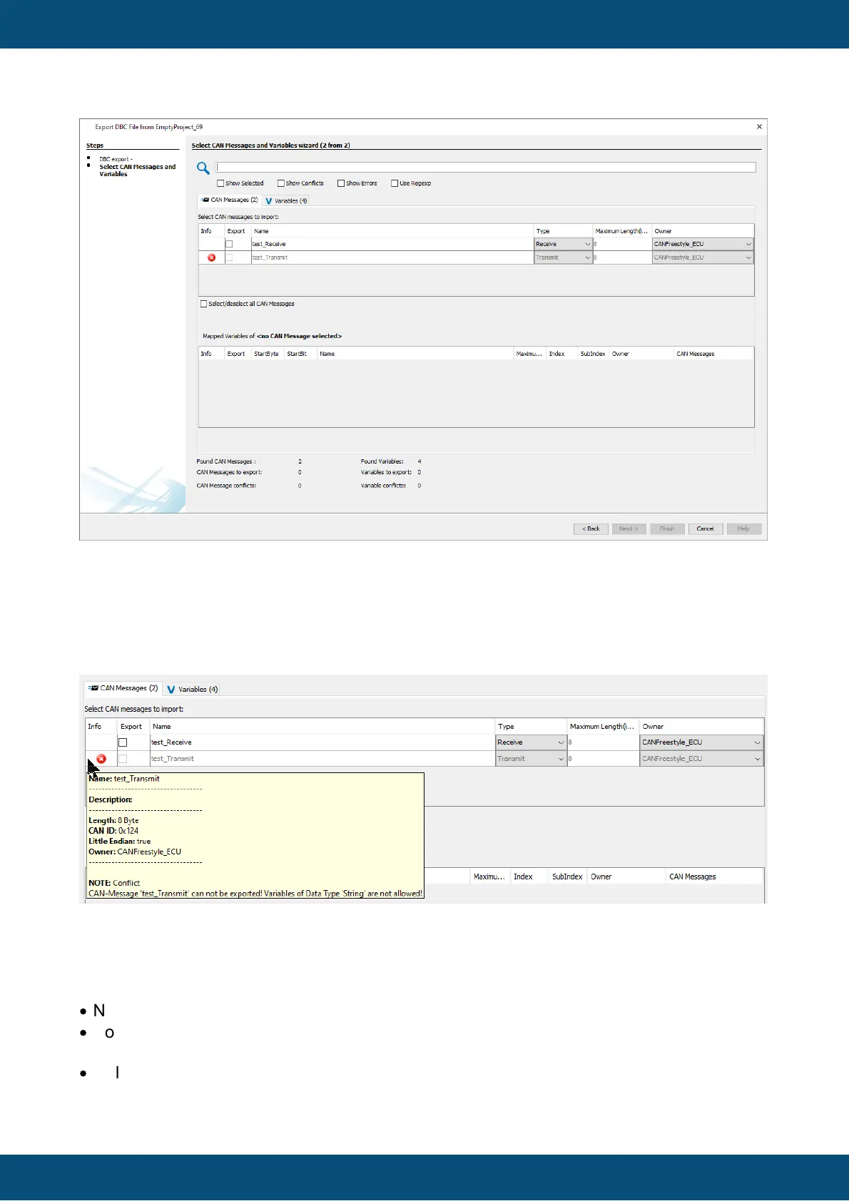 If a CAN message cannot be exported into a dbc file, the CAN message will be displayed